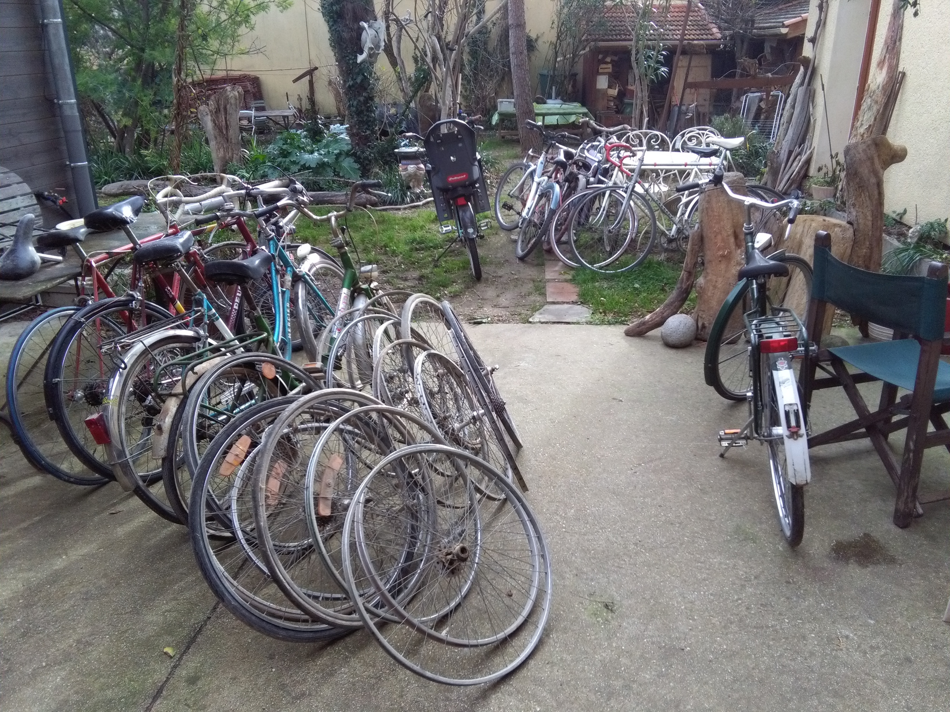 Lundi passé, je suis allé récupérer un certain nombre de bicyclettes, quelques unes confiées pour révisions, et le reste données. celles là seront remises en état, et mises en vente à l’atelier. J’ai du boulot pour cet hiver!