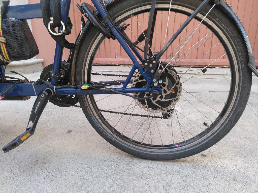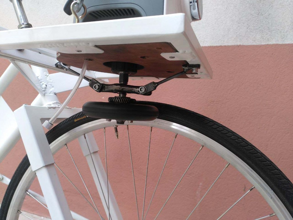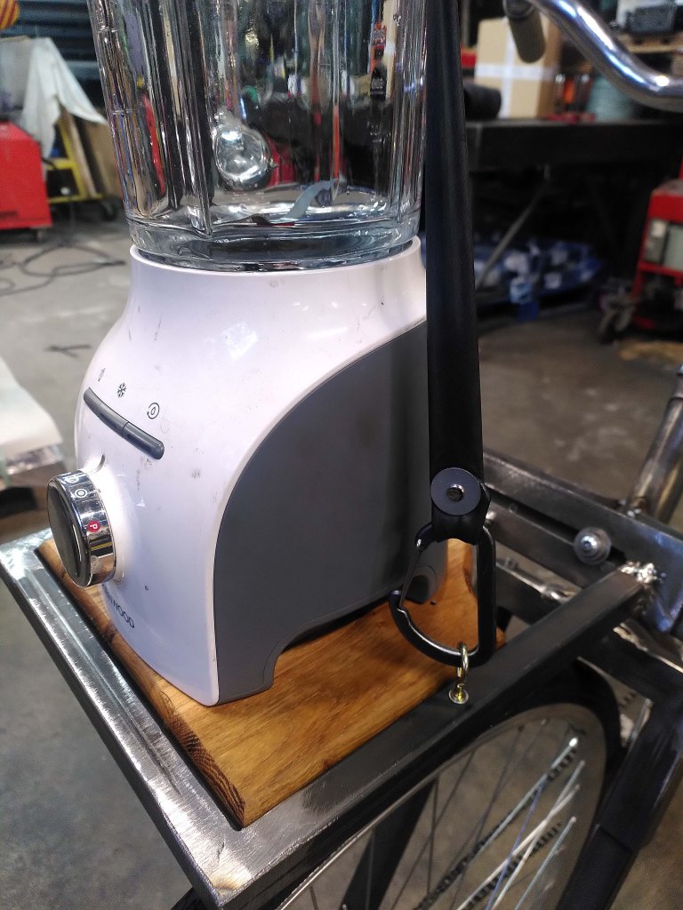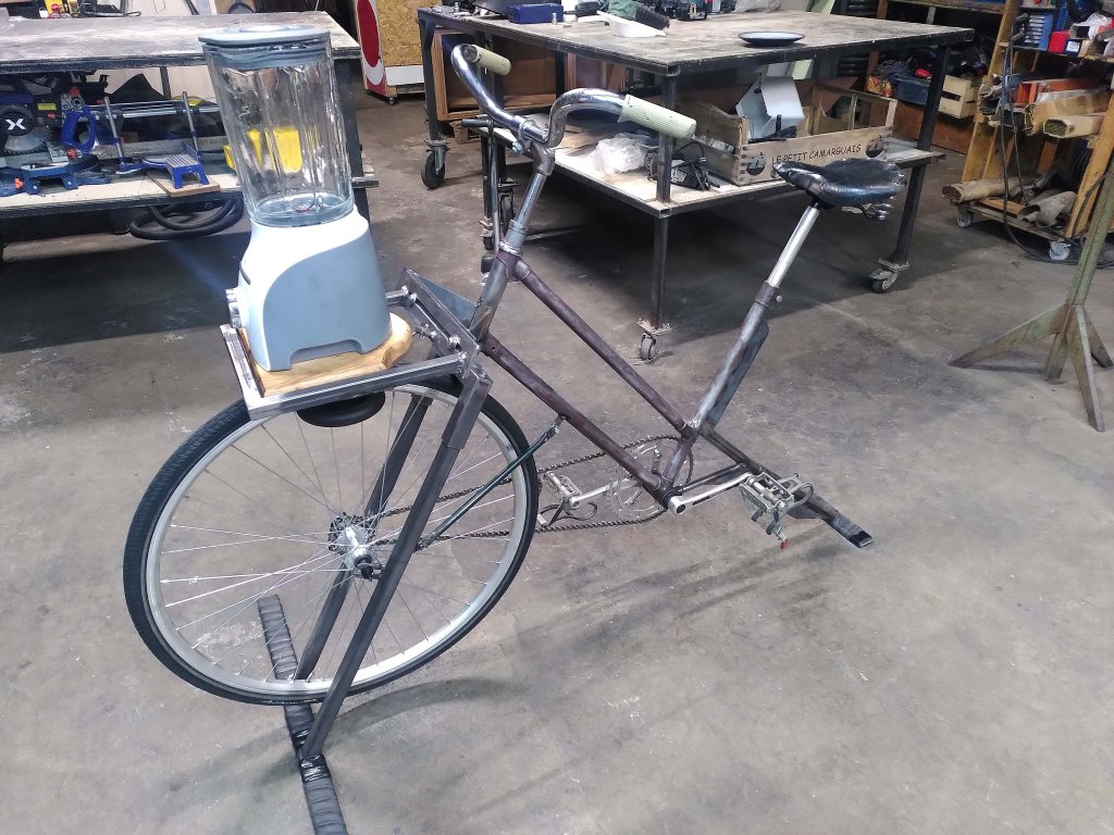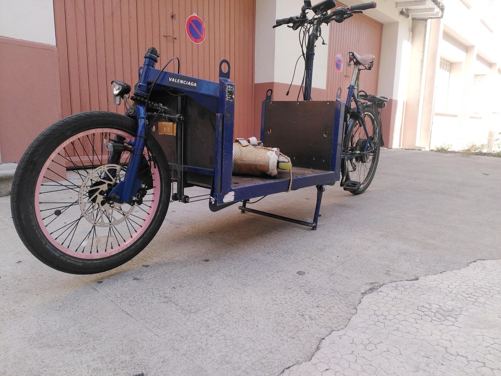 La conception du moment à l’atelier, c’est la conversion de ce cadre Rockrider 500 des années 90 en un mini biporteur à assistance électrique.