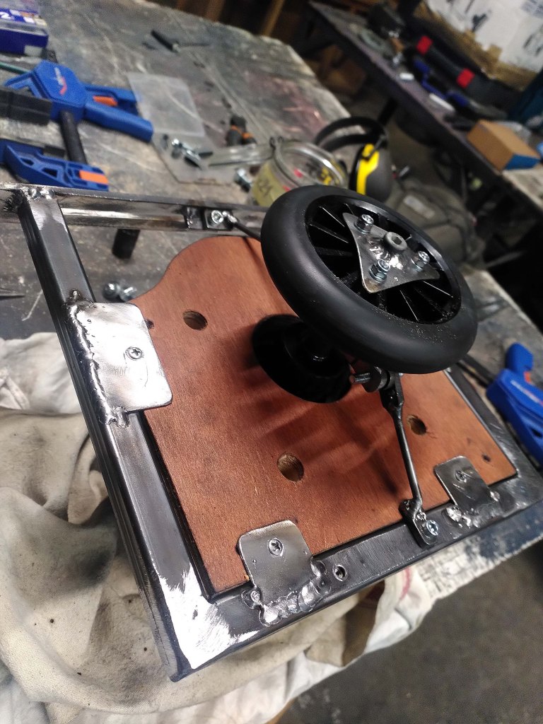 Puis y souder un plateau, avec un fond en dibond, et insttaller le kit électrique